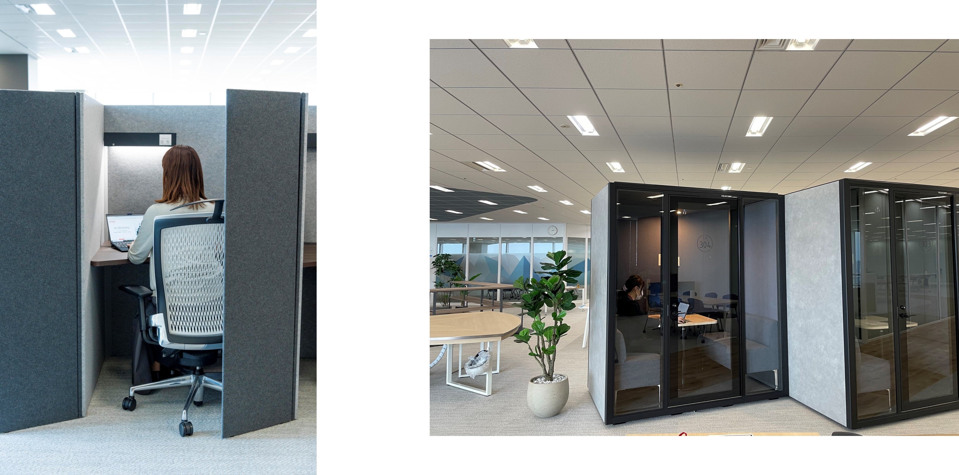 ・オープンミーティングやコミュニケーションのためのスペースを拡大し、ソロワークスペースや個室会議室を縮小