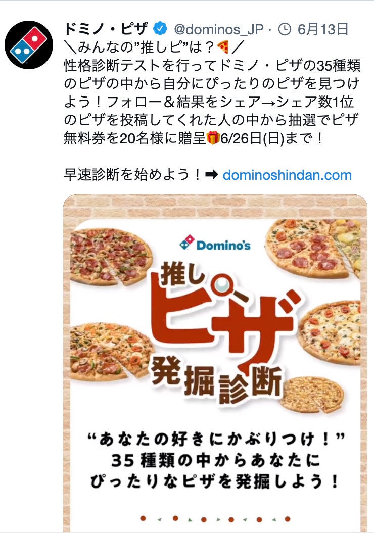 ②「#推しピザ発掘診断」のハッシュタグと「@dominos_jp」をメンションして診断結果を画像や動画で投稿