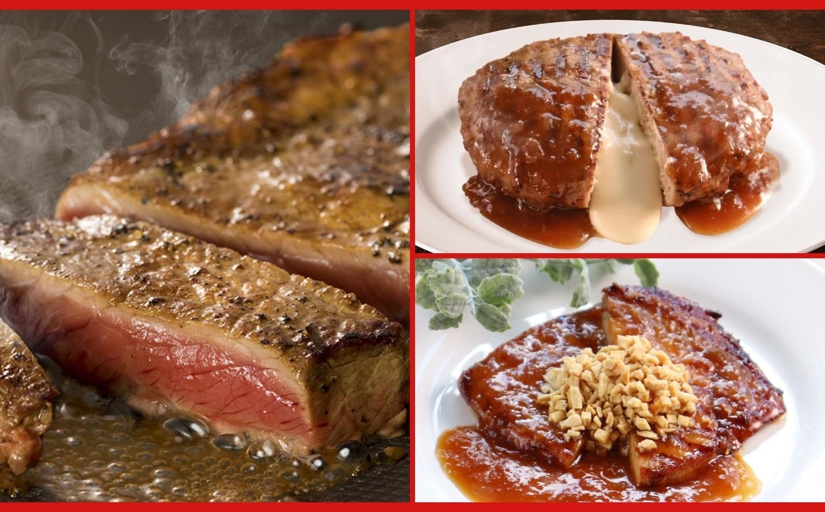 ・ステーキ3種(ビーフ/トンテキ/チーズインハンバーグ)