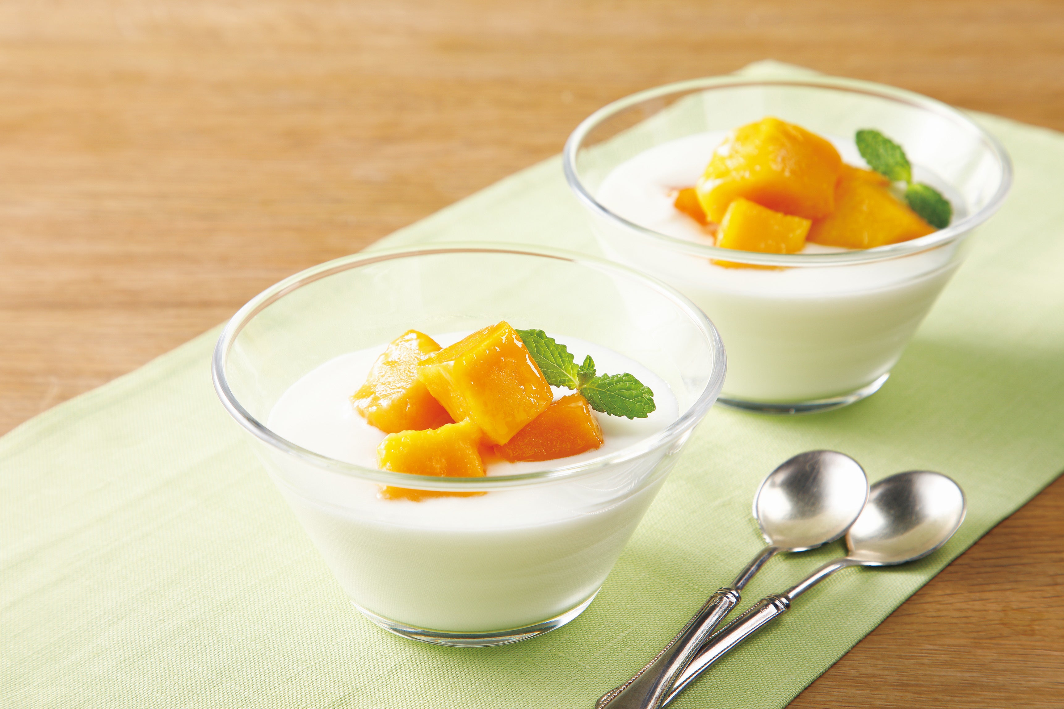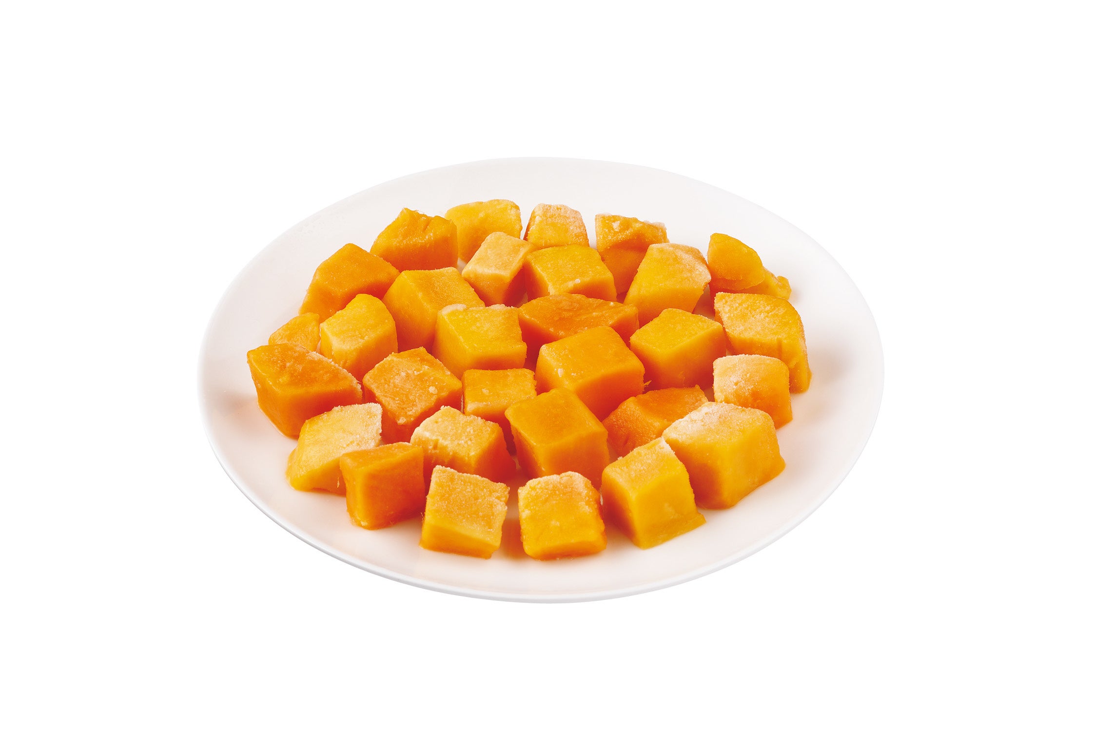 「ファーマーズカットマンゴー(冷凍)」はほどよい甘さと酸味のあるベトナム産のマンゴーを収穫後、食べごろになるまで熟成させ、皮と種を取ってひとくちサイズにカットし、急速凍結した製品です。なめらかな舌ざわりとジューシーな味わいが特徴の、加工に適したカッチュー種マンゴーを使用しています。
