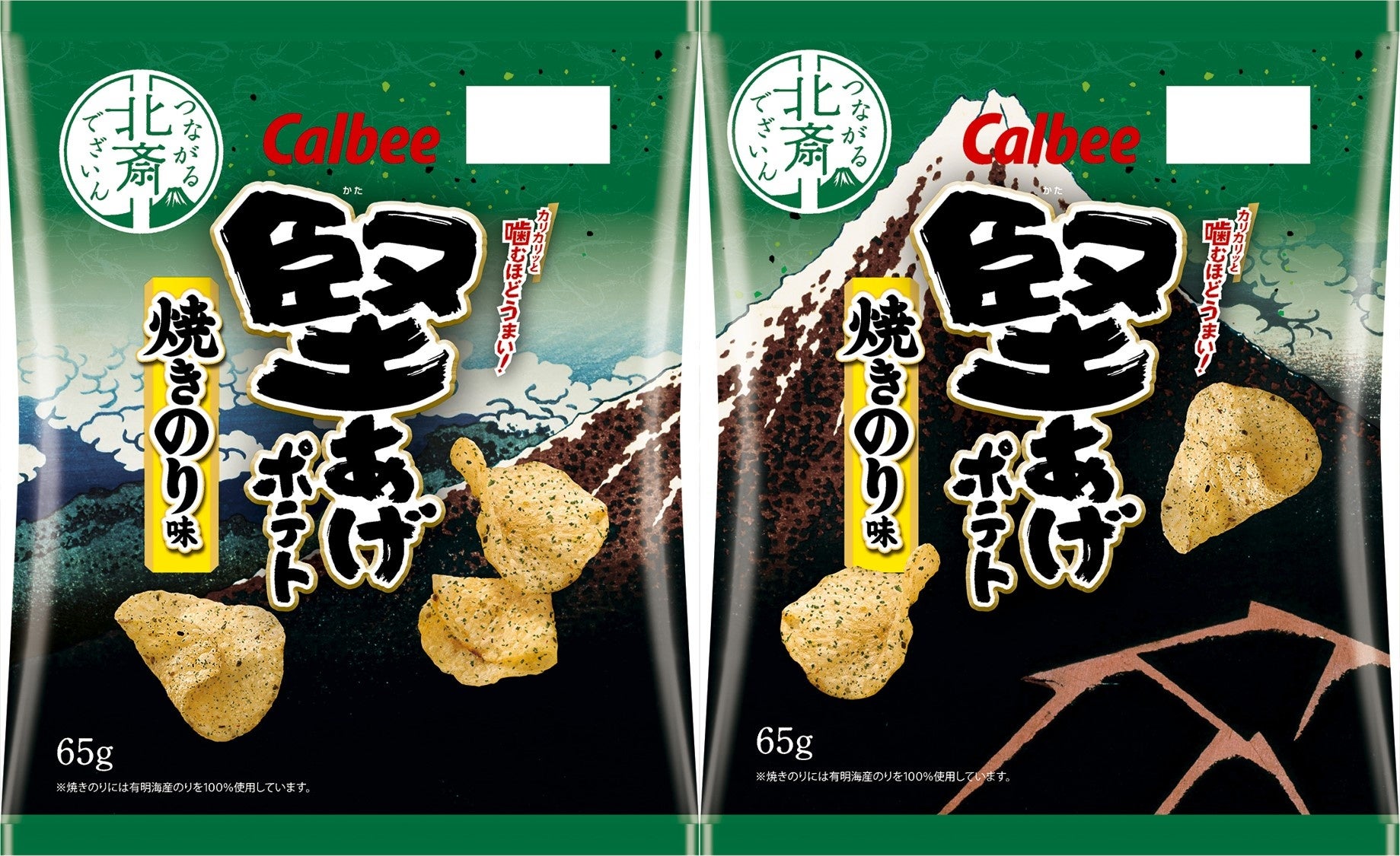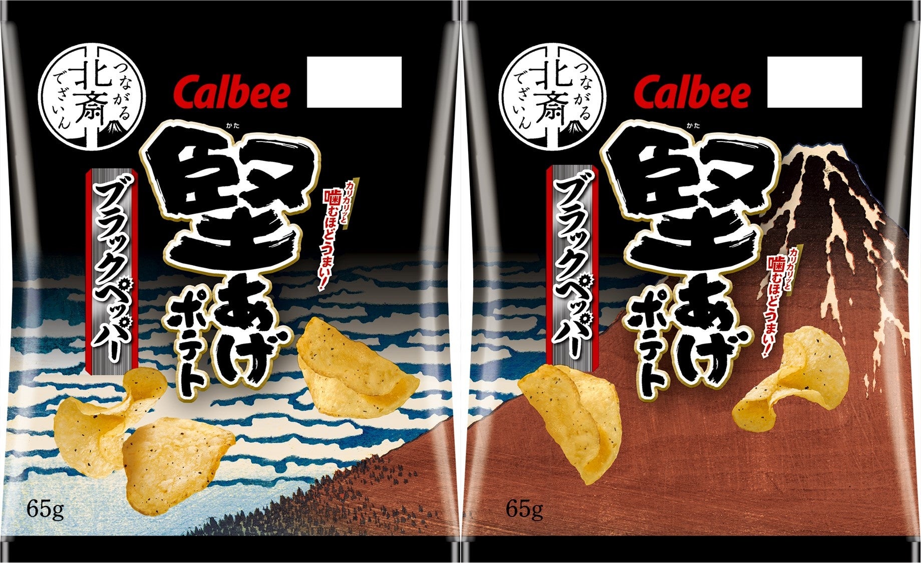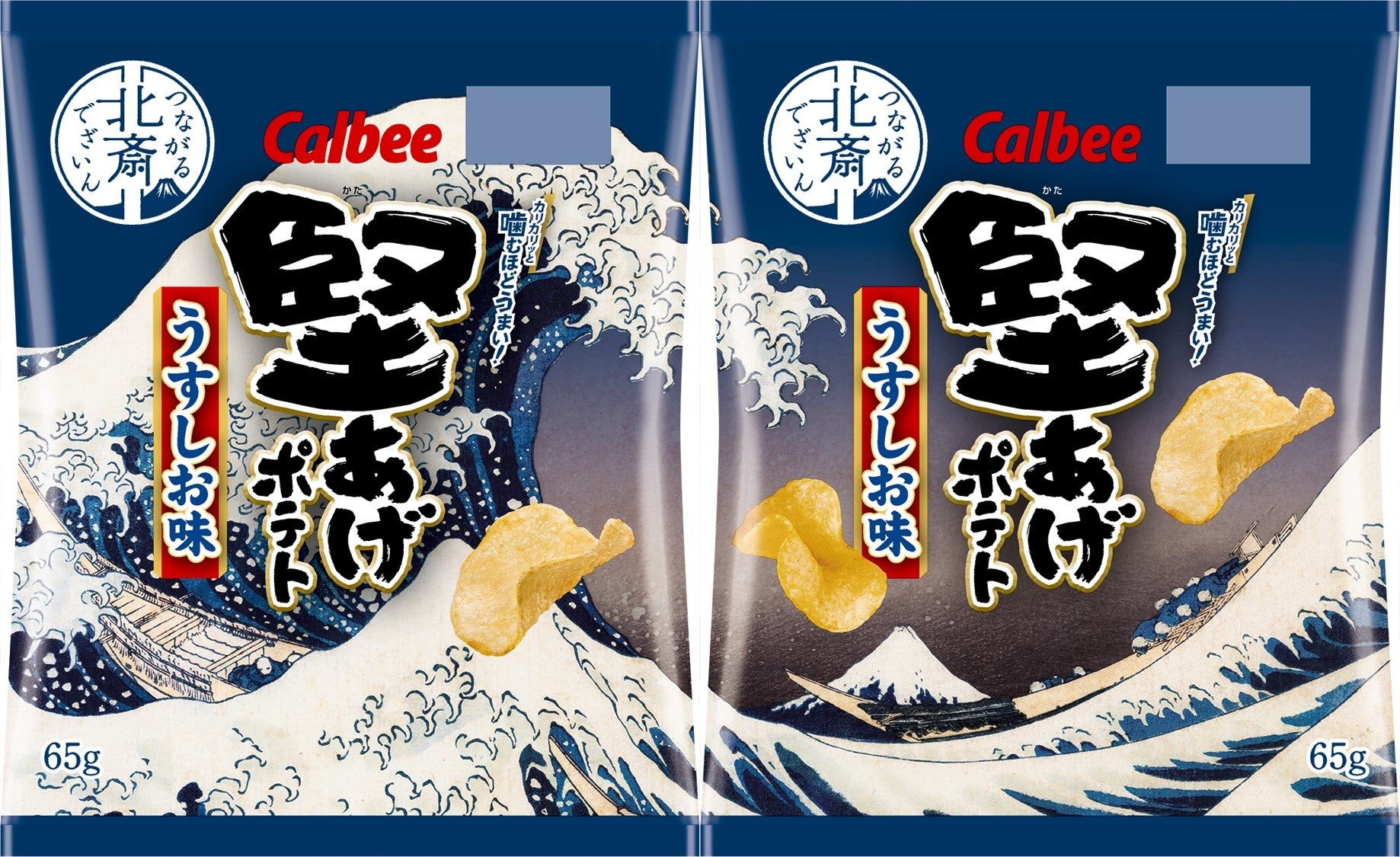 カルビー株式会社(本社:東京都千代田区、代表取締役社長:伊藤 秀二)は、‟噛むほどうまい!”堅い食感が人気の「堅あげポテト」の定番3商品『堅あげポテト うすしお味/ブラックペッパー/焼きのり味』のパッケージを2022年6月中旬から順次、墨田区のすみだ北斎美術館監修の期間限定デザインに切り替えます。日本を代表する浮世絵師「葛飾北斎」(以下、北斎)の名画と、和の世界観を大切にする「堅あげポテト」のコラボレーションです。※コンビニエンスストアでの取り扱いはありません。数量限定。無くなり次第、通常のパッケージとなります。