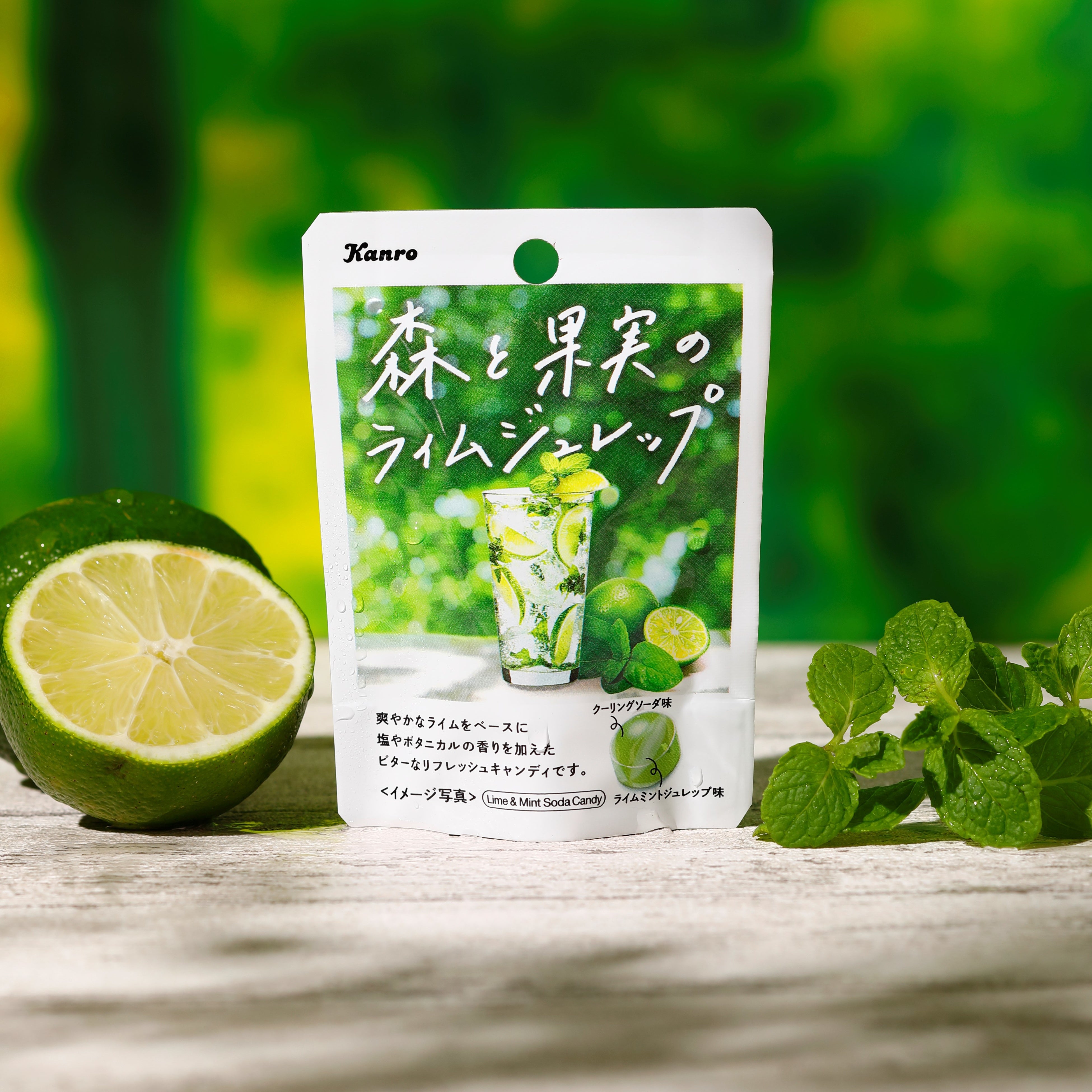 このたび発売する「森と果実のライムジュレップ」は、仕事中や一息つきたいときなどにぴったりなリフレッシュメントキャンディです。ボタニカルな香りとさっぱりとしたライムの味わいで、まるで森の緑に囲まれているような開放感を感じることができます。