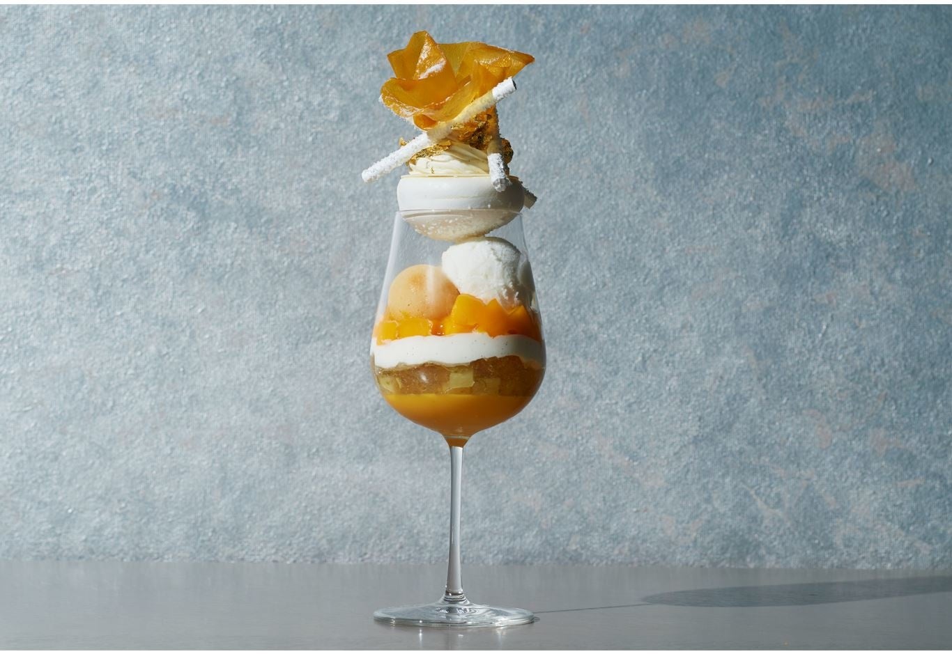 マンゴーアフタヌーンティーの後は、エグゼクティブペストリーシェフ 青木 裕介が創り出す芸術のようなマンゴーパフェで、更なる甘美な世界をどうぞ。マンゴーのまろやかな甘みを中心にレモンやライムの酸の香りを効かる事で、軽やかな口当たりに仕上がっております。グラスの上下に渡り幾重にも重なる繊細な味わいと、造形美際立つ目にも美しくも艶やかなパフエを、是非ご堪能ください。