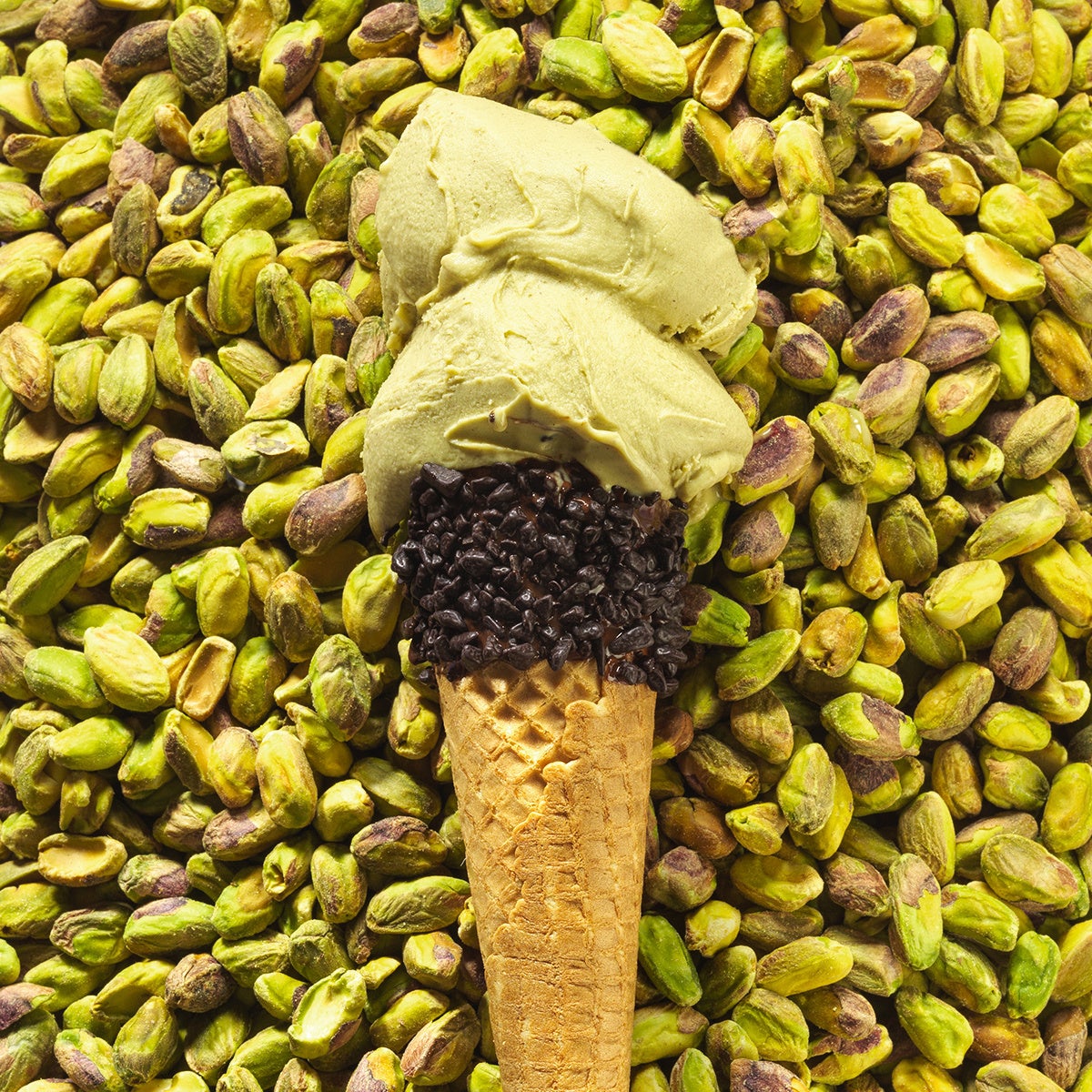 シチリア島ブロンテ産の希少なグリーンピスタチオを贅沢に使用したソルベです。