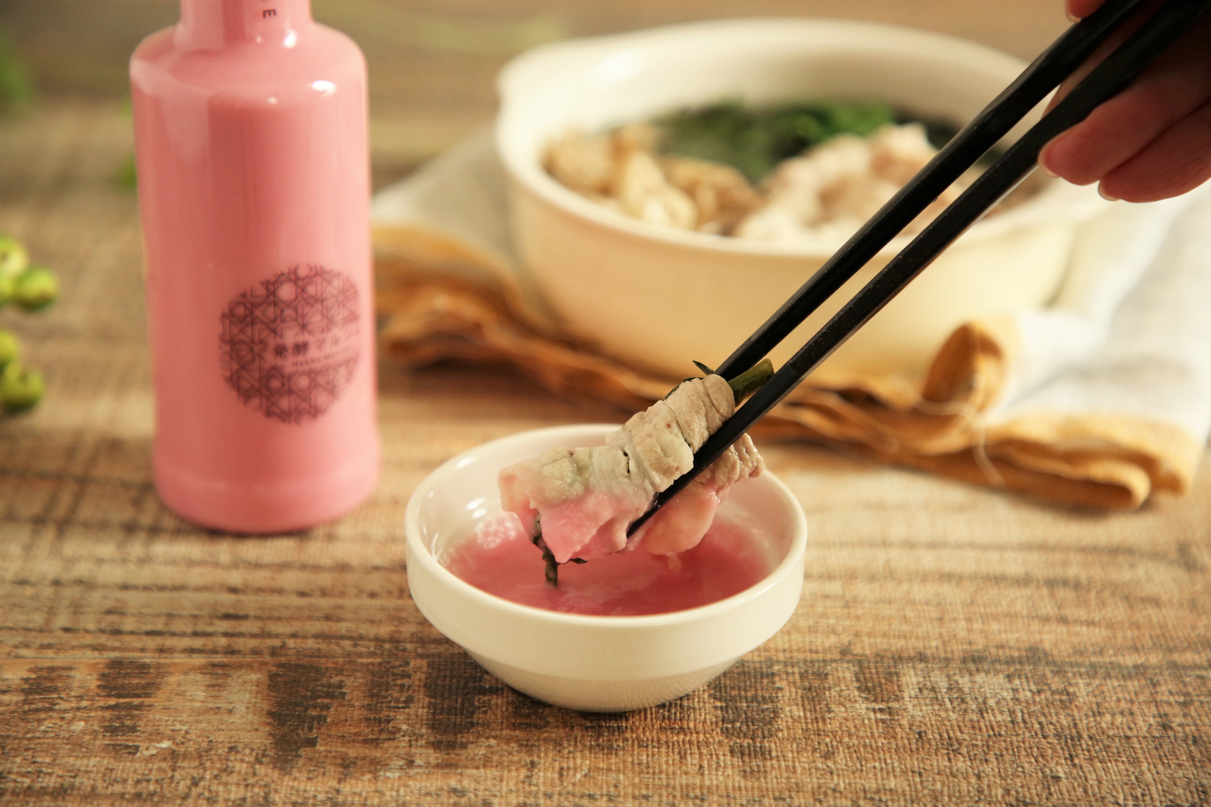 菌ドレ生活は、温かいお料理との相性も抜群。さっとしゃぶしゃぶした豚肉の甘味をより引き出してくれます。