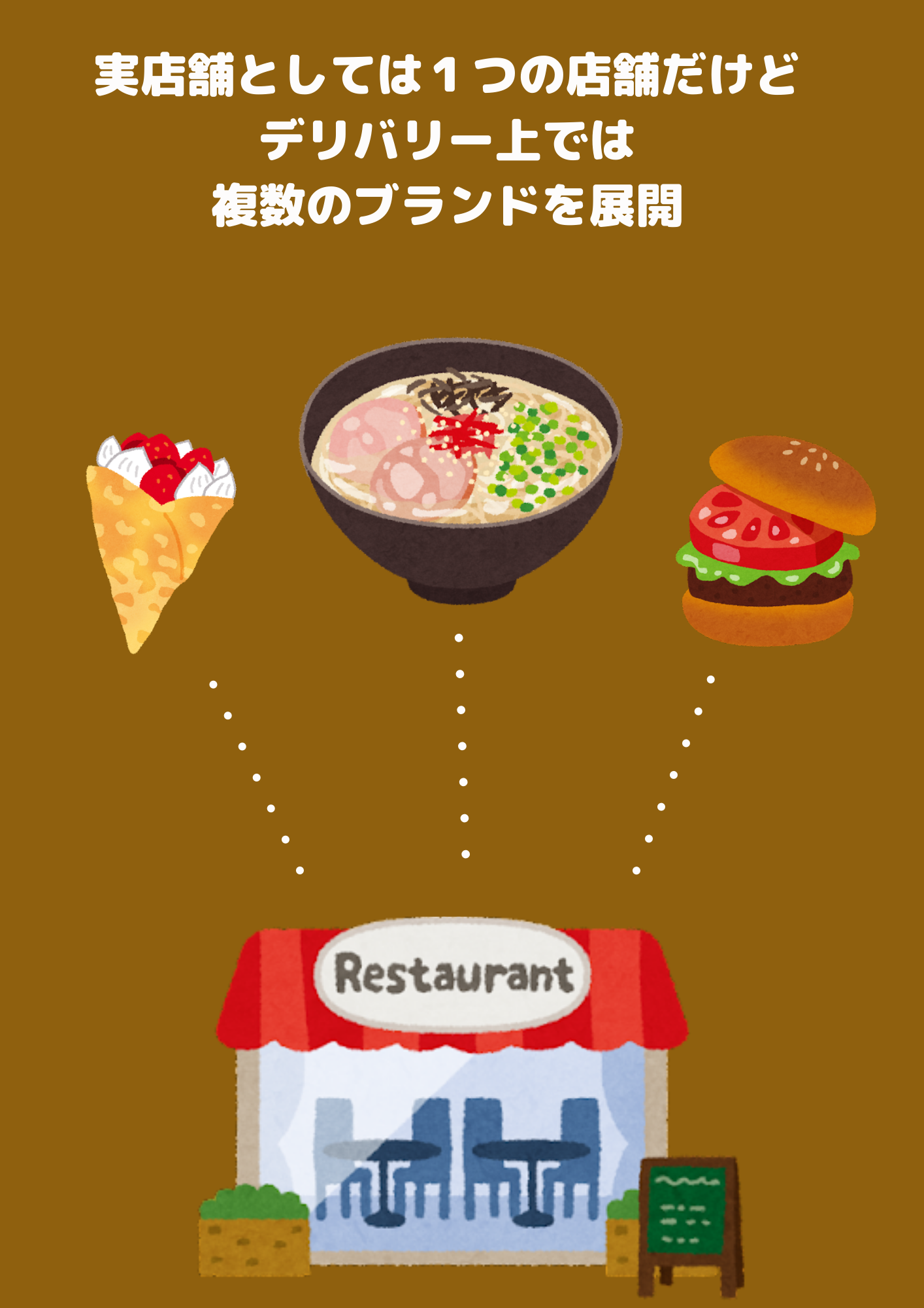 例えば、実店舗がイタリアンの場合なら、デリバリーサービス上では本来のイタリアンの他にも、ハンバーガー屋、クレープ屋、そして「ばんから」としても出店が可能です。店舗は1つですが、その中で複数の業態を営業可能です。