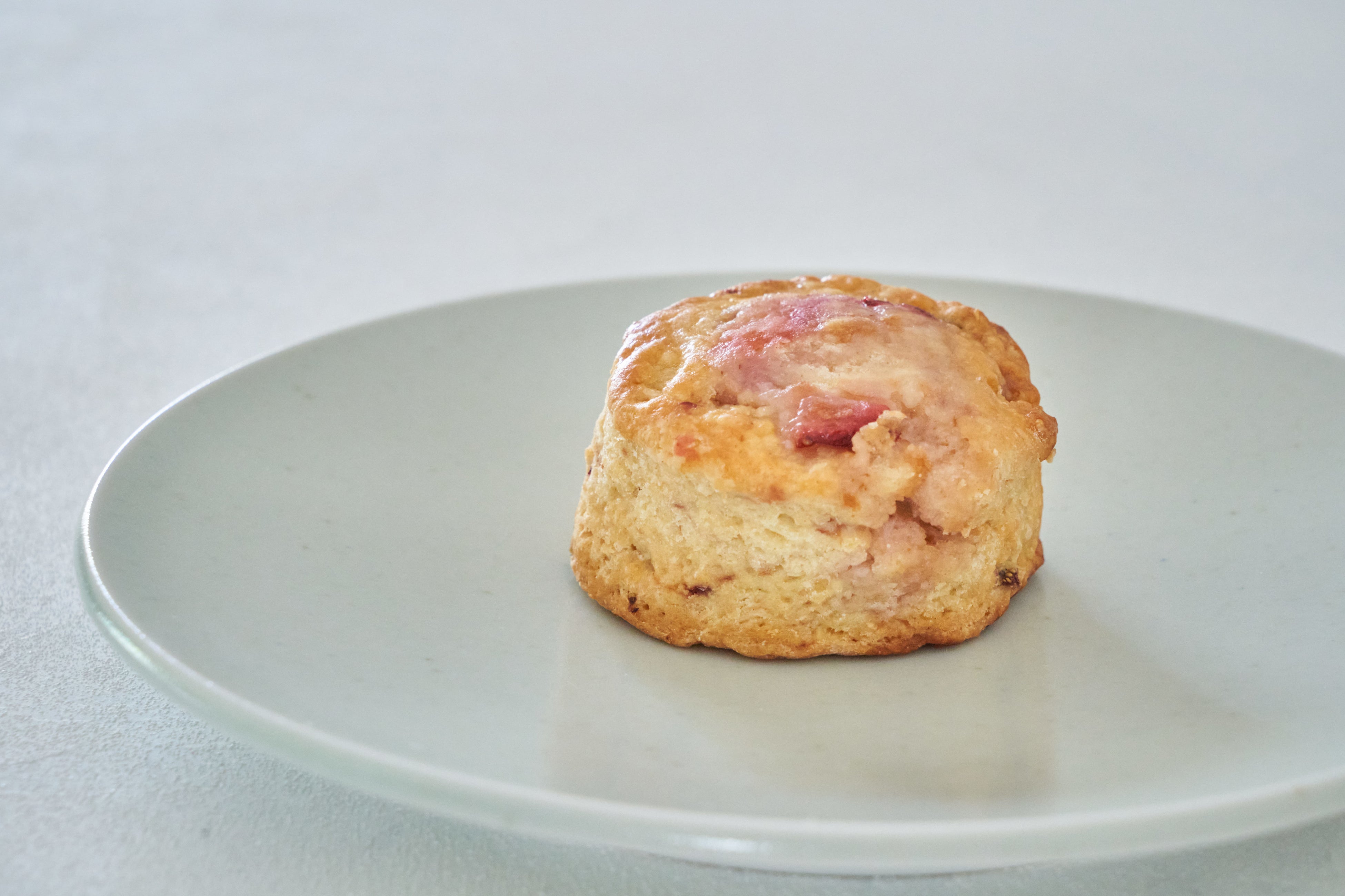 初回の季節のスコーンは、スコーン本来のバター、小麦粉が生み出すやさしい香りと、いちごの甘い香りが絶妙に絡み合うオリジナルフレーバー「The Strawberry Scone」です。