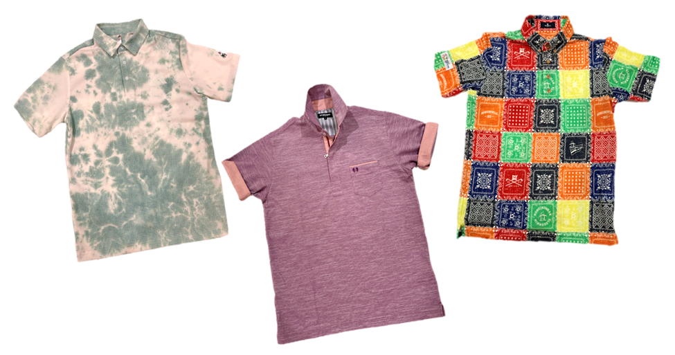 夏の定番シアサッカー生地にトレンドのタイダイ柄をプリントした、ON/OFF兼用(ゴルフ/普段着)で使えるポロシャツ。存在感がありながらも夏らしさを感じられます。