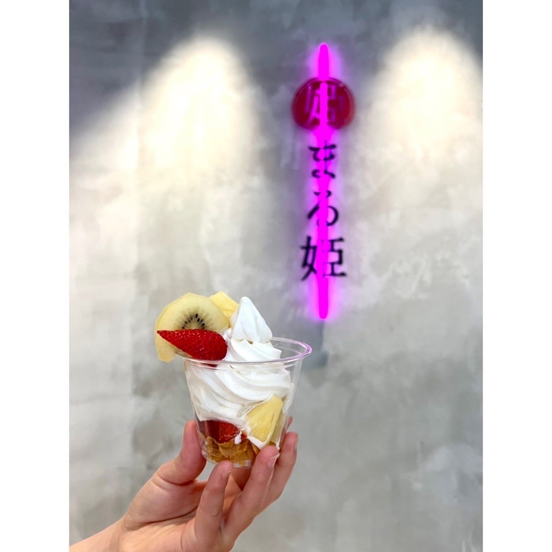 中に求肥を入れることで、もちもちとした食感とソフトクリームが一緒に味わえる一品です。