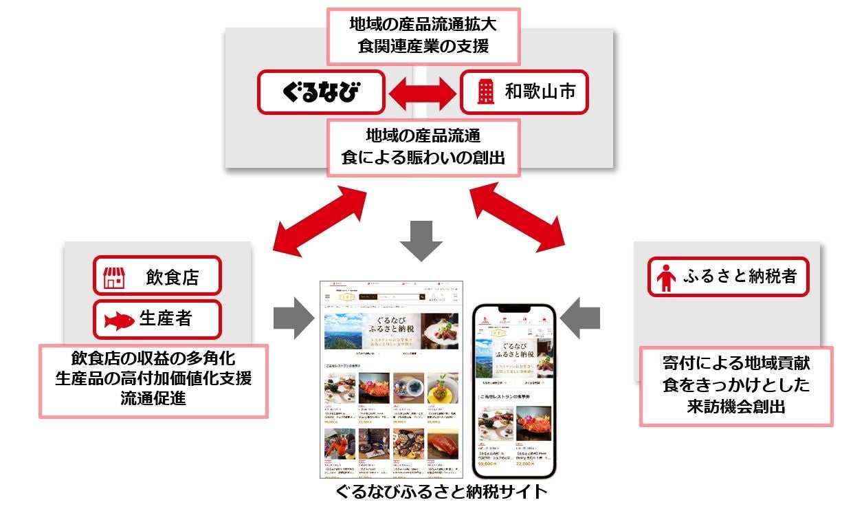 株式会社ぐるなび(本社:東京都千代田区、代表取締役社長:杉原章郎)は、飲食店および飲食店へ流通する産品の食消費サイクルによる地域活性を目的に、ぐるなびとして初の試みとなる「食事券型ふるさと納税」サービスを2022年6月14日(火)より和歌山市から本格始動します。
