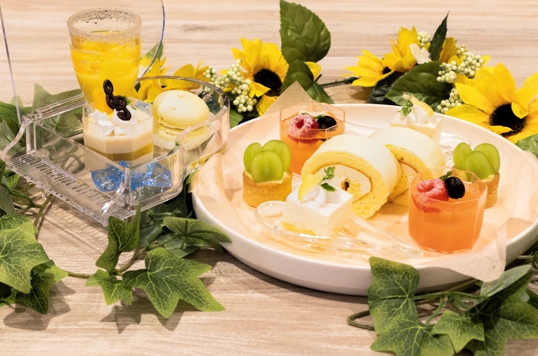 夏の果実として、オレンジやシークワーサー、ルビーグレープフルーツ等の色鮮やかな甘酸っぱい果実と、優しい甘さのマスカットやレアチーズケーキで飾る「Sweets Plate(スイーツプレート)」、夏野菜を使ったカラフルな色彩とほのかな酸味がスイーツともマッチする「Light Meal Plate(ライトミールプレート)」の2段プレートに加え、ホテルパティシエが焼き上げる自家製スコーン3種の食べ放題とドリンクがセットになった、美味しくてフォトジェニックな季節のアフタヌーンティーをお楽しみください。