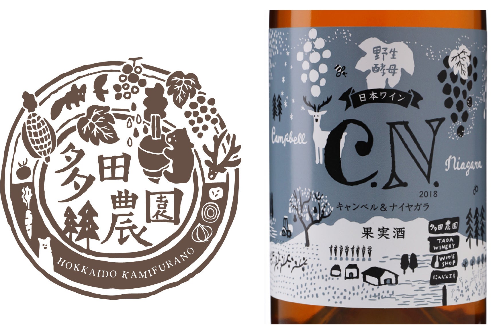 北海道・上富良野町は山に囲まれた盆地で寒暖差が大きく、冬にはマイナス25℃、数年に一度はマイナス30℃を記録する極寒の土地です。ブドウ作りのチャレンジは、”雪”を味方につけることから始まりました。さまざまな苦労を経て、雪をかいてかぶせる自然の防寒設備を発見したことで、ブドウの木を凍害から防ぐことに成功。今では、寒冷地ならではの酸がきれいな、良質のワインを生み出す原料として高い評価を得ています。そして、この上富良野町ならではのミネラル豊富な土地の特長をより表現できる、野生酵母を使った手間を惜しまないワイン造りをおこなっています。「多田ワイナリーを地域のワイナリーとして育て上げること。そして、富良野の地域にヴィンヤードやワイナリーが数多くでき、ワイン文化の香り高い豊かな地域文化づくりに微力ながら貢献すること」を目標に日々奮闘しています。