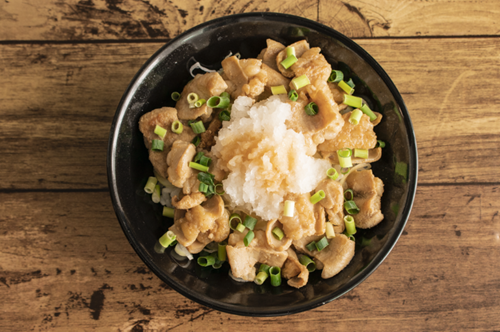 旨味たっぷりの国産のホルモンにおろしポン酢とねぎで味付け。