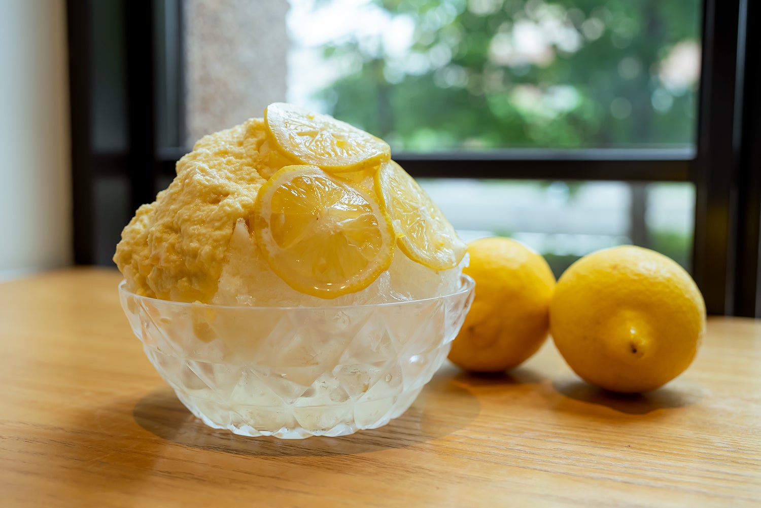 有機レモンの果汁と皮を使用した、甘みと程よい苦みが感じられるかき氷です。レモンと蜂蜜をあわせたシロップと、レモンとバターを使用したレモンカードで仕上げています。皮を捨てずに活用することで、食品ロス削減にもつなげています。