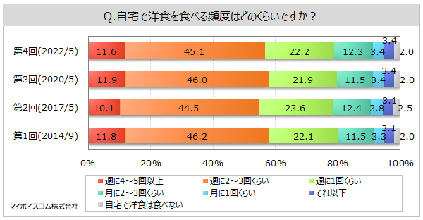 マイボイスコム株式会社(東京都千代田区、代表取締役社長:高井和久)は、4回目となる『洋食』に関するインターネット調査を2022年5月1日~5日に実施し、10,141件の回答を集めました。調査結果をお知らせします。