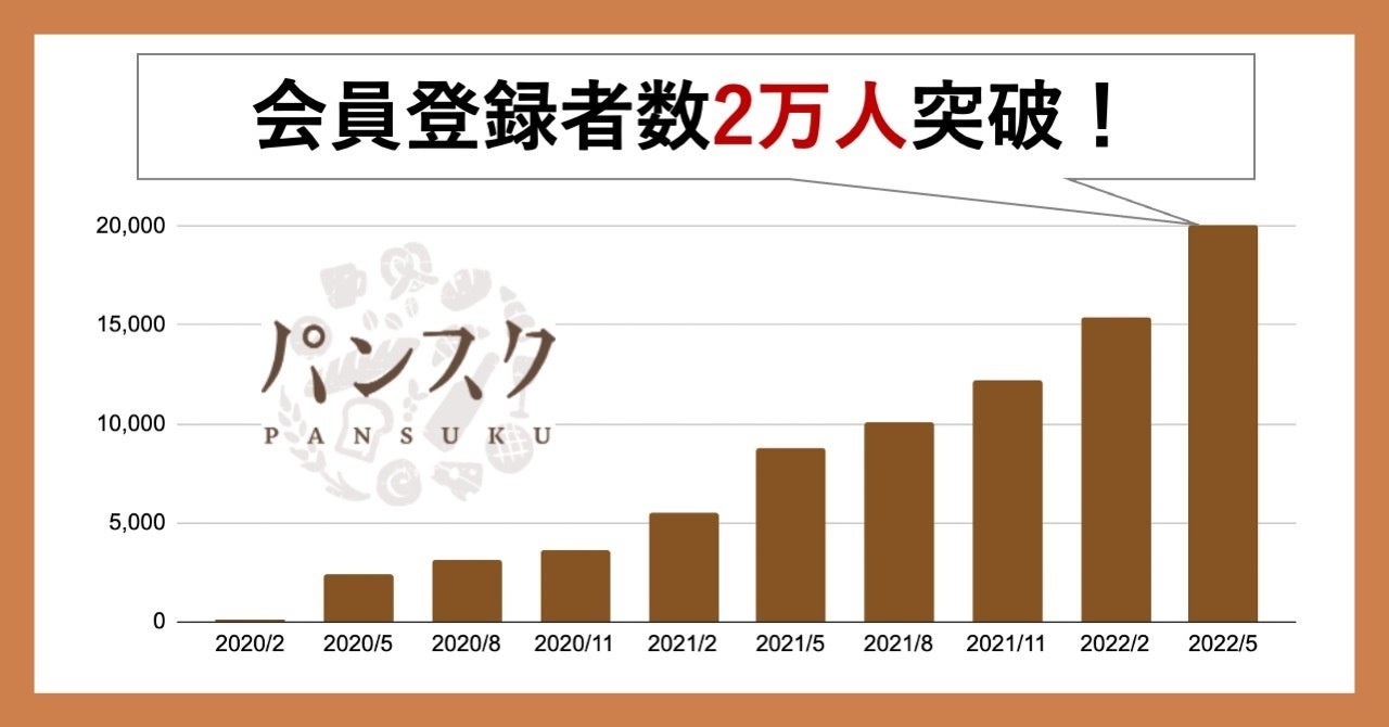 地域のパン屋さんが抱えるあらゆる課題を独自の冷凍技術とDXで解決する株式会社パンフォーユー(本社:群馬県桐生市、代表取締役:矢野 健太、以下パンフォーユー)が提供する、全国のパン屋さんから焼き立ての状態を冷凍したパンが届く個人向けサブスクリプションサービス「パンスク」( https://pansuku.com/ )は、会員登録者数が、20,000人を突破*しました。*2022年5月末時点