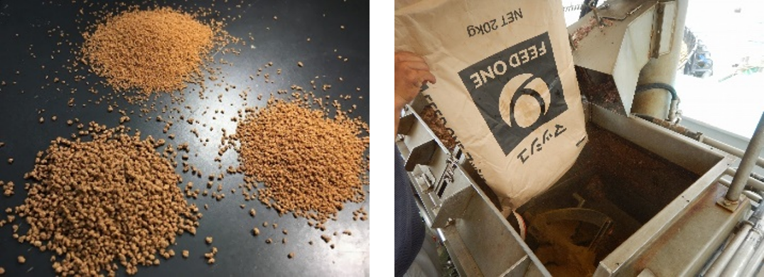 本協業における養殖で使用する餌は、生育状況に合わせた成分調整や消化吸収を助ける形状に成型する独自の共同開発を行い、生育に必要な適正量を給餌することで海中への沈降量を低減させています。これにより養殖場の汚染を抑制し、海洋環境の負荷軽減に貢献しています。