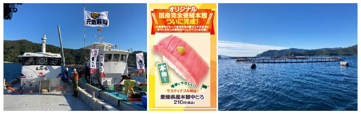 極洋及び極洋フィードワンマリンが養殖している完全養殖本鮪の餌の共同開発に参画し、愛媛県愛南町にある当社専用の生け簀で、寿司に合う良質の完全養殖本鮪を「魚べい」を含む全国の店舗で販売します。