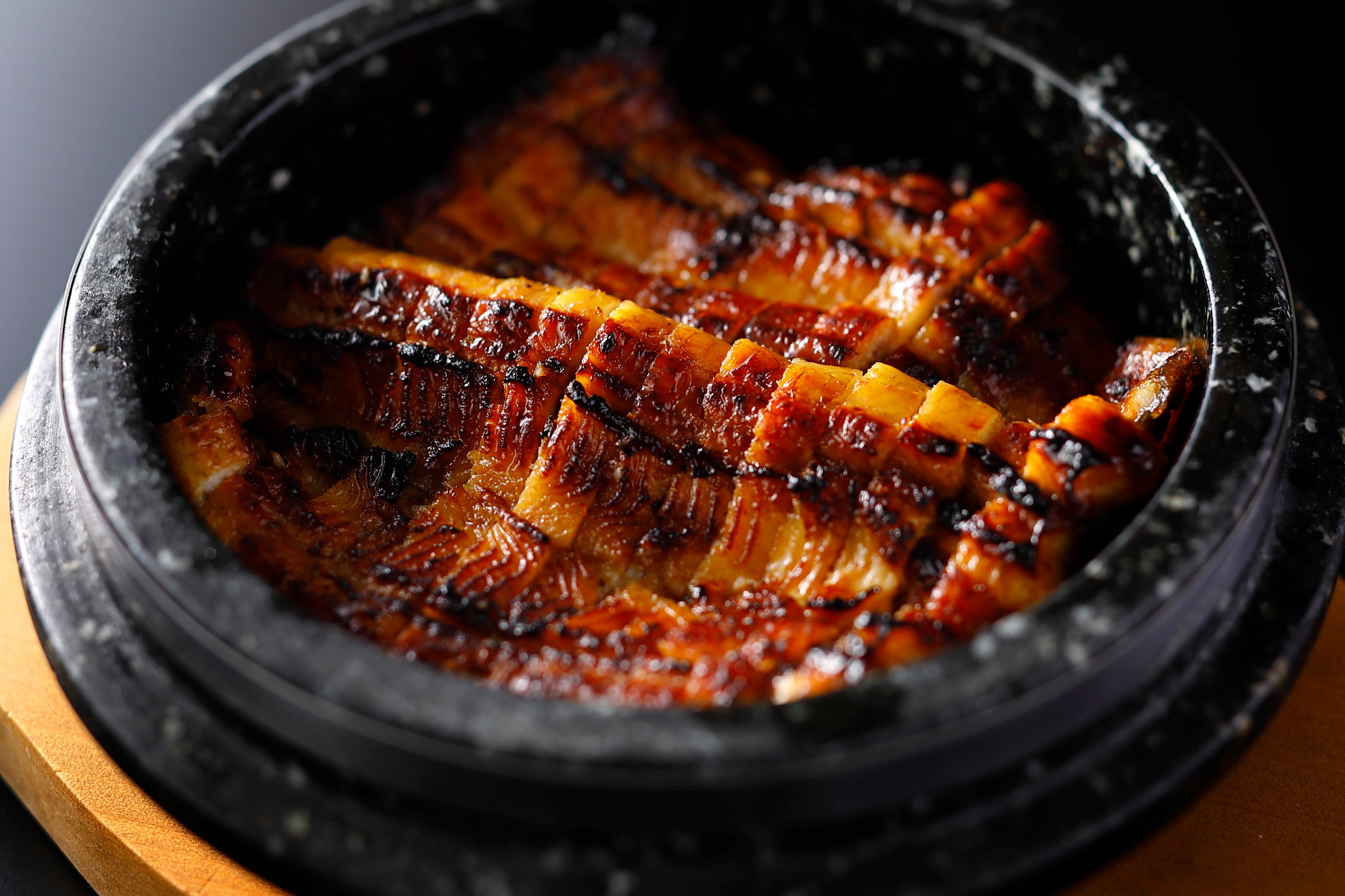 料理の主役には軟らかく肉質の良い国産鰻を贅沢に使用。一度白焼きにしてふっくらと蒸しあげた後、創業以来継ぎ足してきた秘伝のタレにくぐらせ丁寧に焼きあげた鰻を、白米とともにアツアツの石焼きで仕上げた『鰻まぶし』として提供します。