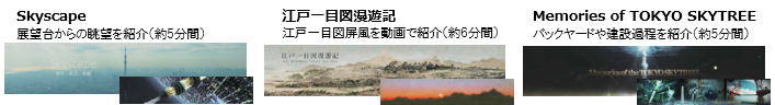 視界不良時には天望デッキ フロア350において、縦6m×横10mのパノラマスクリーンを使用し、3つのコンテンツを上映しています。