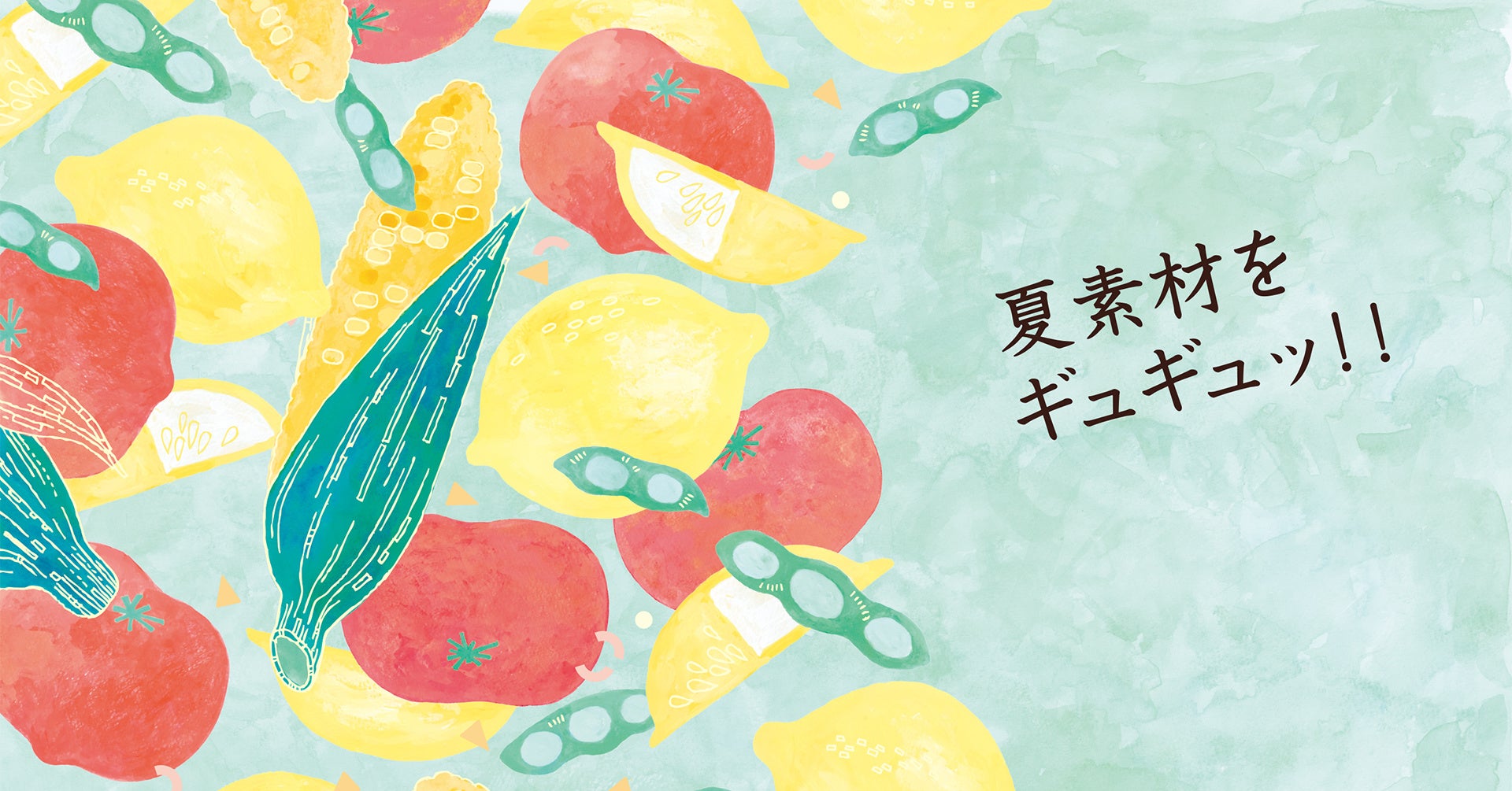 夏素材を瑞々しく色鮮やかに表現したパッケージデザインは、人気日本画家の栗原由子さん(http://yuko-kurihara.com/)にお願いいたしました。澄んだ川の冷たい水の中で夏素材がくるくると涼しそうに泳いでいるような日本の夏ならではの懐かしくて、楽しい情景を描いて下さいました。
