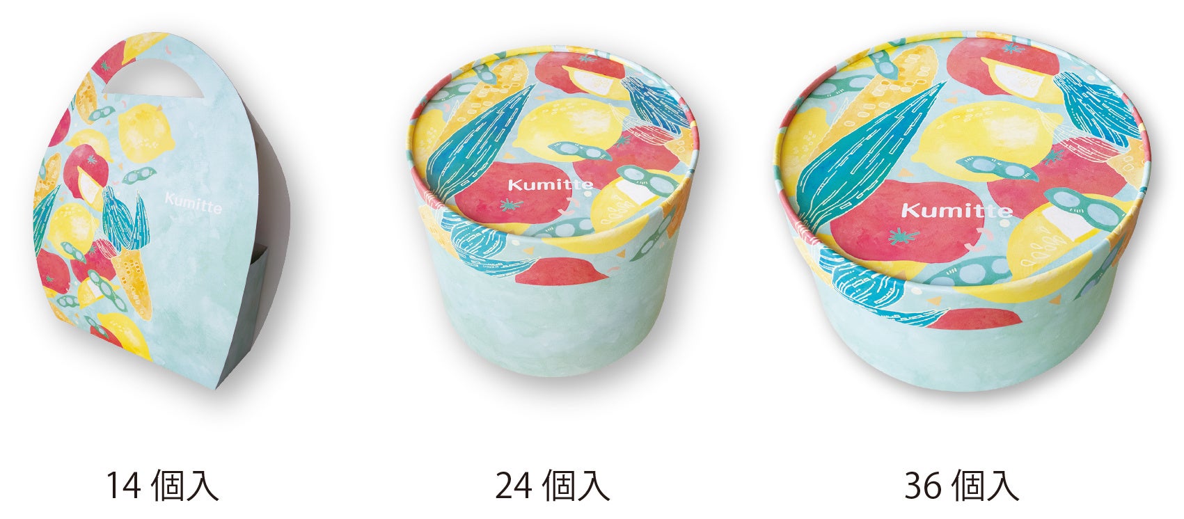 Kumitteは、しょうゆ、桜えびなどのおかきならではの定番の素材にプラスして、トマト、ごぼうなど新しい素材を組み合わせた、ひと口サイズのおかきです。彩り鮮やかな個包装は、中身が見えることで、どれから食べようか、選ぶ楽しさがあります。