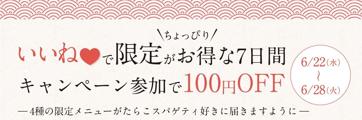 とんかつ専門店「かつや」などを展開するアークランドサービスホールディングス株式会社の子会社、フィルドテーブル株式会社(本社:東京都千代田区/代表取締役社長:中島 宗則)は、たらこスパゲティ専門店「東京たらこスパゲティ」にて期間限定の新メニュー「冷たいお出汁と炙りたらこの冷製スパゲティ」及び、初の「お客さま参加型メニュー投票」と店舗限定メニューの販売を2022年6月22日(水)より開始し、4種の限定メニューを対象としたキャンペーン「いいね♡で限定がお得な7日間」を開催いたします。