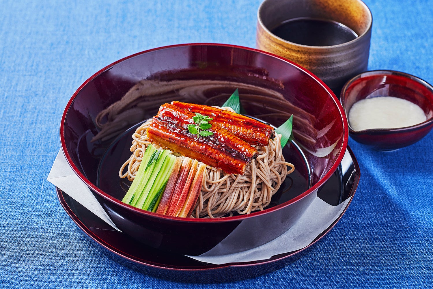 ふっくら焼き上げた蒲焼でスタミナアップ。「鹿児島県産うなぎの蒲焼の冷たいお蕎麦 とろろ添え」
