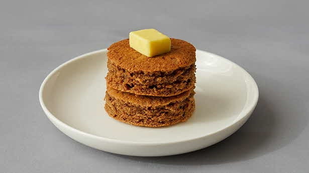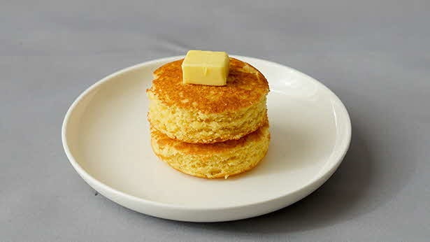 〇普段の朝食にはふんわりパンケーキ。たんぱく質や食物繊維もしっかり補給。
