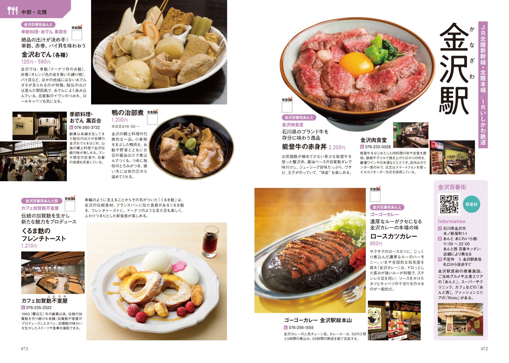 探しやすいエリア別の章立てで、駅ごとに駅ビルと味わえるご当地グルメを紹介。旅の途中で味わいたいご当地グルメやご当地食材を使ったメニューに絞り込んで、迫力あるメニュー写真とともに情報を取り上げています。各メニューには実食Check欄を記載、そのほか感染症などで変わりやすい営業時間などを確認できるよう、駅ビルのホームページへとリンクしたQRコードを掲載し検索性を高めています。
