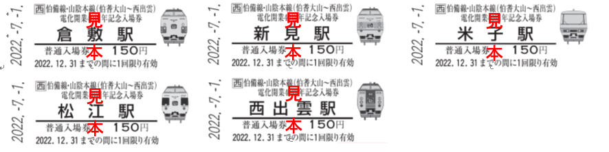 倉敷駅、新見駅、根雨駅、米子駅、松江駅の「みどりの窓口」で発売します。