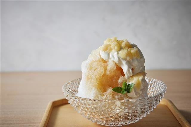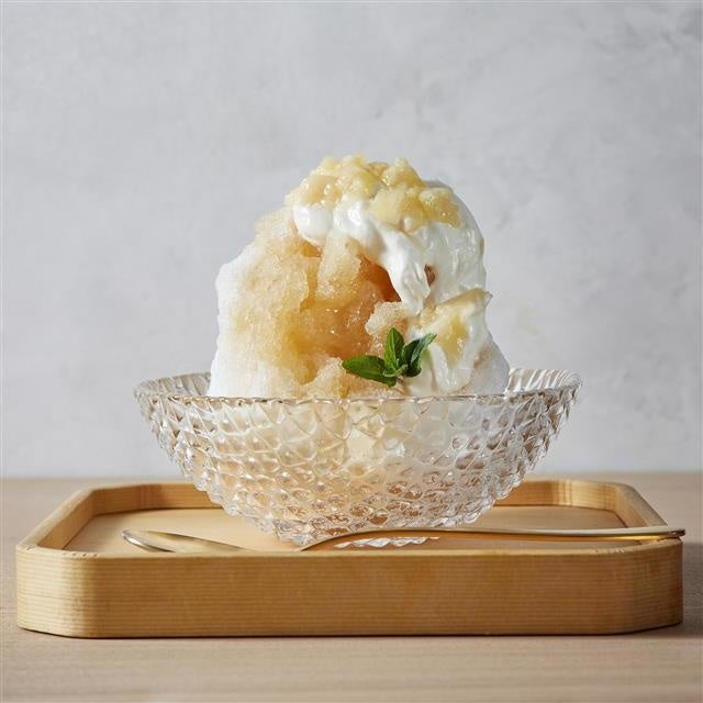 旬の白桃に檸檬の果汁を合わせ、甘酸っぱく仕上げた、フルーティーで爽やかな、夏にぴったりのかき氷。ごろっとした果肉の食感や、程よい甘みの生クリームのまろやかさと共にお楽しみください。