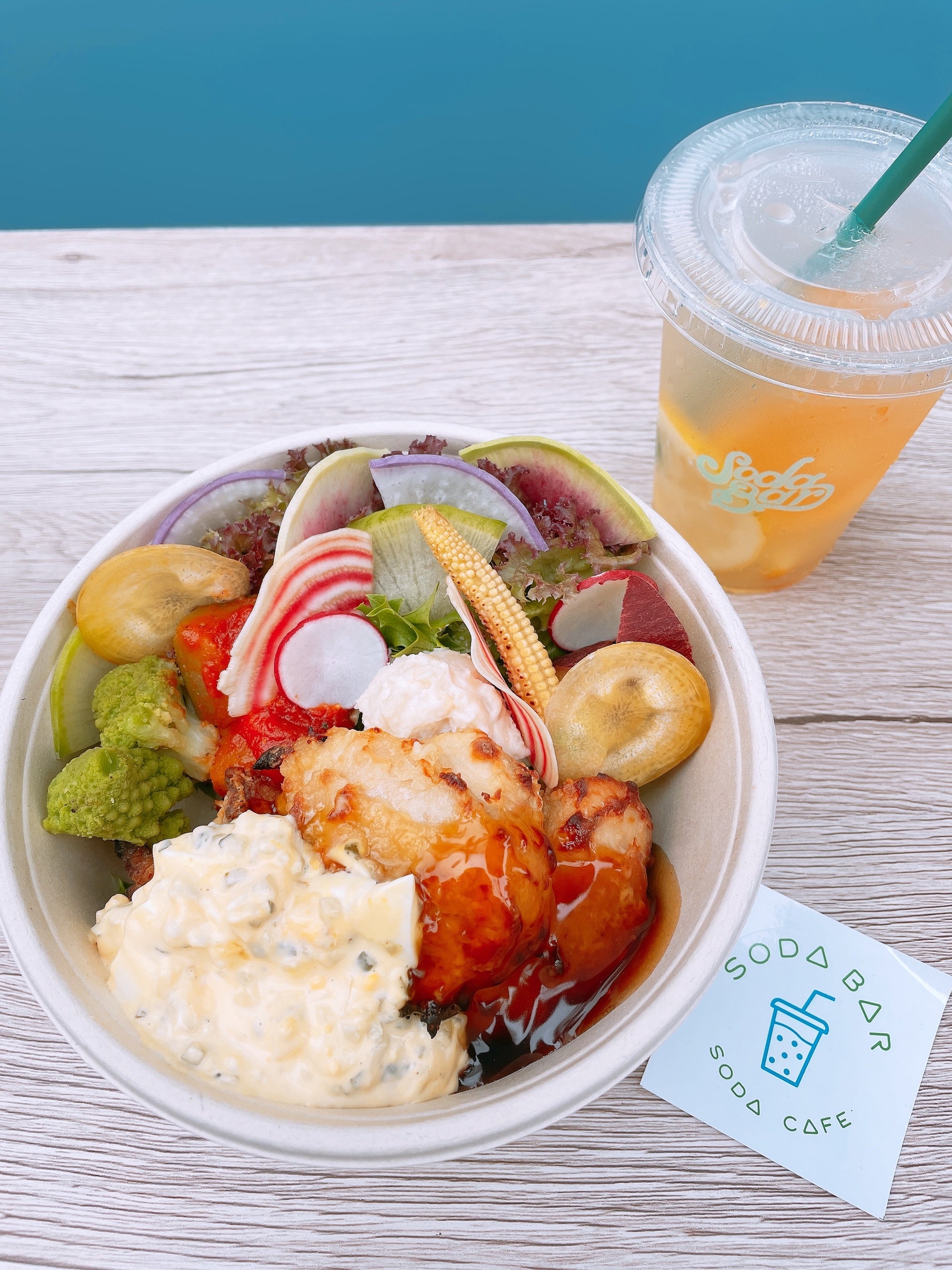 恵比寿店では、季節のソーダをはじめとしたドリンク類に加え、色取り取りの西洋野菜をふんだんに使用したアメリカ西海岸発のヘルシー丼“ライスボウル”を販売いたします。