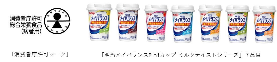 「総合栄養食品」は、特別用途食品の分類の一つです。医学的、栄養学的な根拠をもとに基準が定められており、使用実績や販売実績などをもとに審査が行われ、消費者庁が表示の許可をしています。「明治メイバランスMiniカップ」シリーズは全国のドラッグストアを中心に2万5千店以上の採用実績がある店頭販売を主とする商品です。その中でもお客さまに最も選ばれているミルクテイストシリーズの表示許可を取得しました。