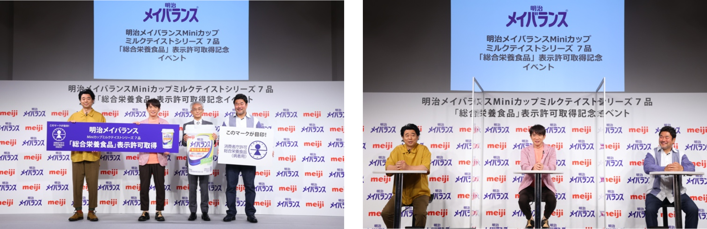 株式会社 明治(本社:東京都中央区、代表取締役社長:松田 克也)は、同社が販売する市販向け栄養食栄養食「明治メイバランスMiniカップ ミルクテイストシリーズ」7品が特別用途食品「総合栄養食品」の表示許可を取得したことを記念し、明治メイバランスMiniカップミルクテイストシリーズ7品「総合栄養食品」表示許可取得記念イベントを6月16日(木)に青山グランドホールにて開催しました。
