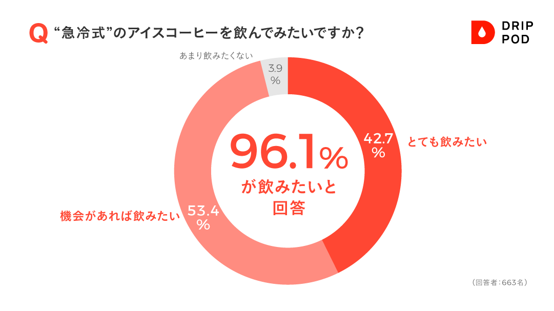 - 手間暇かからず“急冷式”の美味しいアイスコーヒーが飲めるなら・・・!96.1%が「飲みたい」と回答