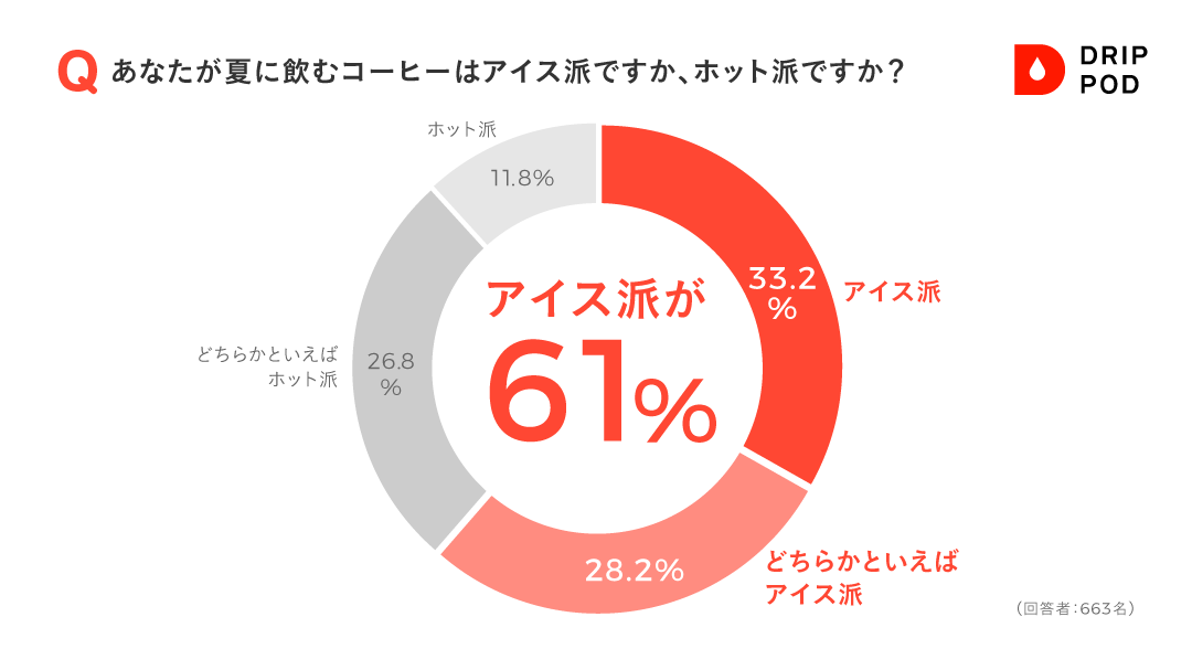 また夏に飲むコーヒーはアイス派かホット派かを聞いたところ、約6割の方がアイスコーヒー派と回答しました。