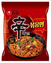 辛ラーメンのクセになる旨辛な味はそのままに、焼きそばタイプに再現した商品。焼きそばに合う細めのモチモチっとした麺がソースとよく絡みます。具材のひとつのカマボコはお馴染みのロゴである「辛」の文字が入っています。