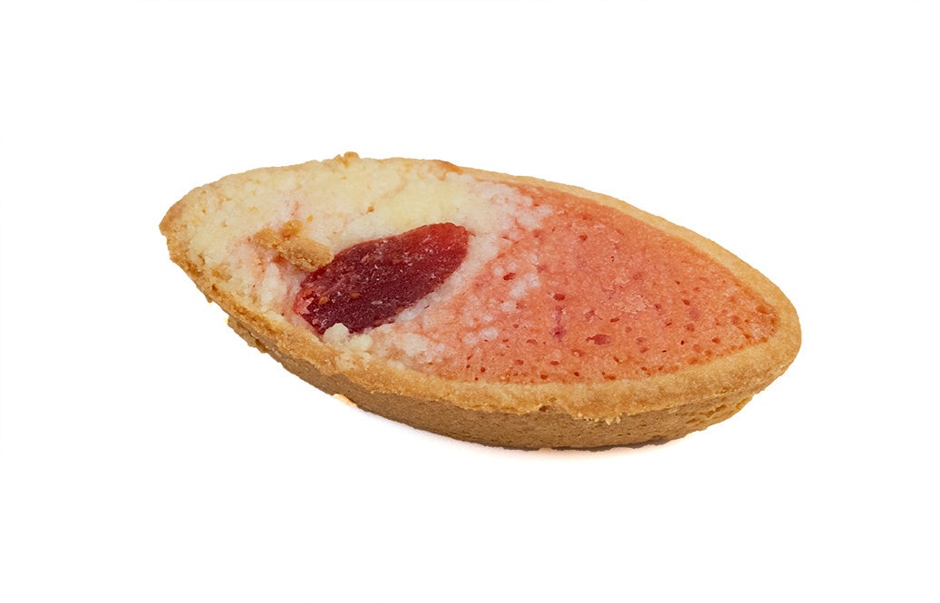いちごペーストを加えたフィナンシェ生地に、甘酸っぱさがアクセントになるいちごのコンフィチュールを添えました。