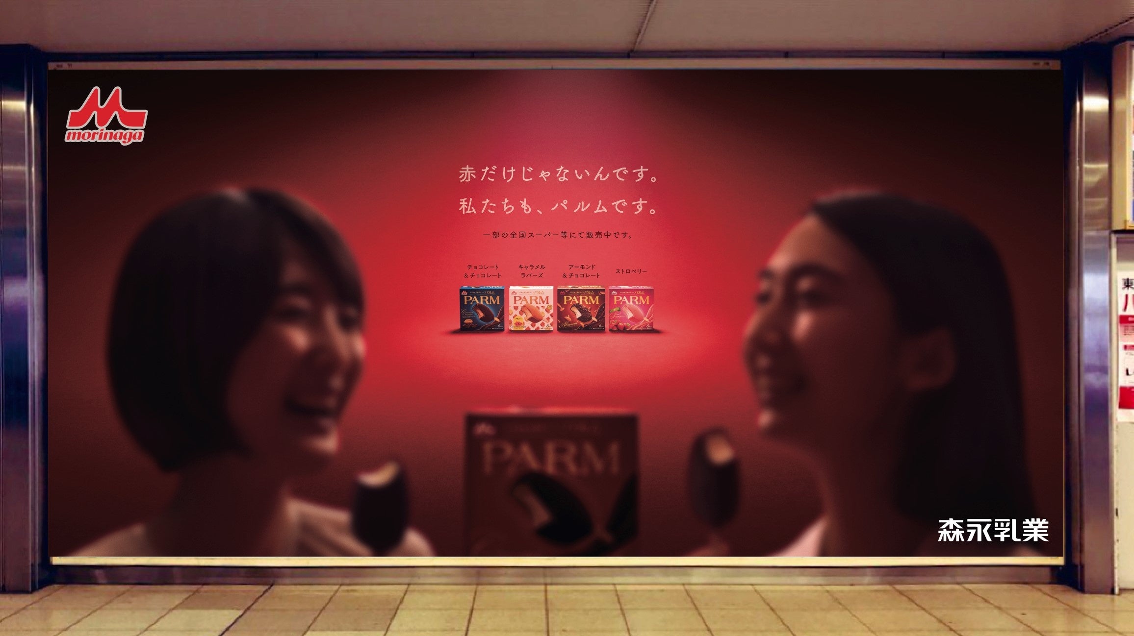 森永乳業は、口どけの良いコーティングとなめらかなアイスが同時にとろけ合う、大人のための上質なアイス「PARM(パルム)」から、「PARM(パルム)チョコレート&チョコレート ~厳選カカオ仕立て~」「PARM(パルム)キャラメルラバーズ」「PARM(パルム)アーモンド&チョコレート」「PARM(パルム)ストロベリー」などの定番の赤色パッケージの「PARM(パルム)チョコレート(通称:赤パルム)」ではない、通称!?“じゃない方パルム”たちの商品の広告を展開します。(巷では“じゃない方パルム”と呼ばれているとか、いないとか・・・)
