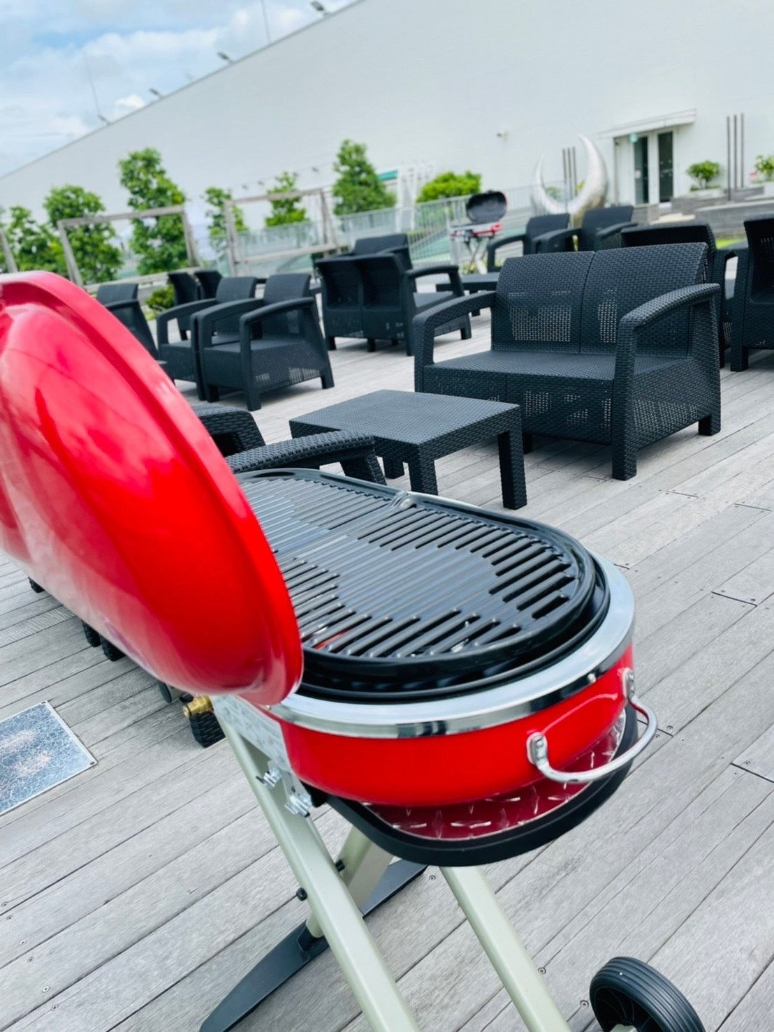 非日常をより贅沢に楽しんで頂くため、ワンランク上の機材をセレクトしました。ゆったり楽しめるソファー席を始め、オシャレなガスグリルを配置。また、プレミアム席をご利用の方限定で、各席にシャンパンやミニビアサーバーを設置致します。