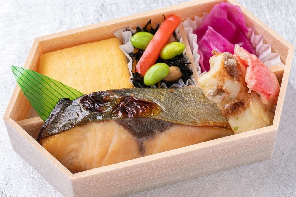 夏の高級魚「しまあじ」を幽庵焼きにすることで、しまあじ本来の良質な脂によって冷めてもしっとりやわらかく上品な味わいが特⻑のお弁当。お魚好きの方にぜひ、食べていただきたい一品です。