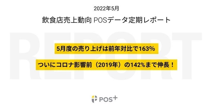 クラウド型モバイルPOSレジの「POS+(ポスタス)」を提供するポスタス株式会社(本社:東京都中央区、代表取締役社長:本田 興一)は、2022年5月度の飲食店売上動向についてPOSデータを基に集計し、結果をとりまとめましたのでお知らせします。
