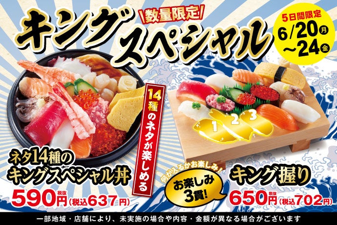 持ち帰り寿し店の「小僧寿し」「茶月」を運営する株式会社小僧寿し(本社:東京都中央区 代表取締役社長 良本 宣之)は、持ち帰り寿し店「小僧寿し」にて、6月20日(月)~24日(金)の平日限定で、「キングスペシャルフェア」を開催いたします。