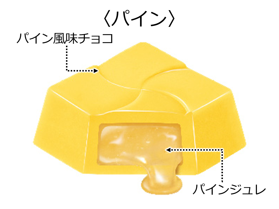 沖縄県産パイナップルを使用したパインジュレを、パイン風味チョコで包みました。