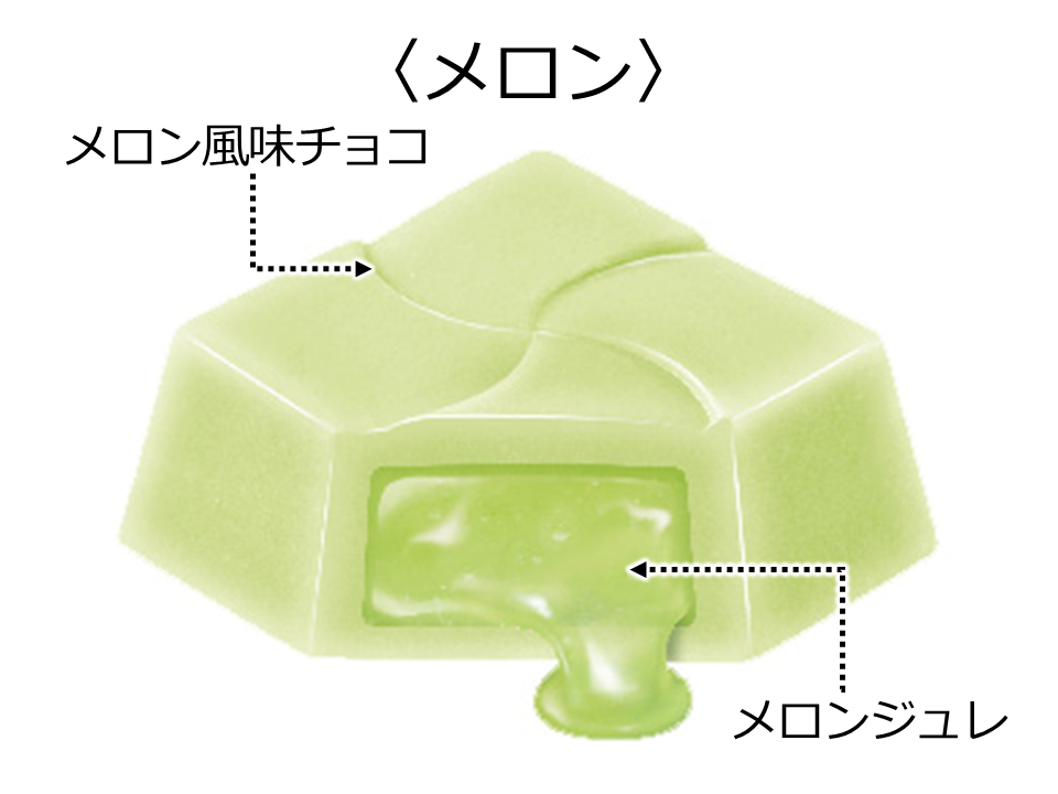茨城県産アンデスメロンを使用したメロンジュレを、メロン風味チョコで包みました。