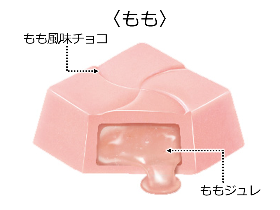 岡山県産白桃を使用したももジュレを、もも風味チョコで包みました。