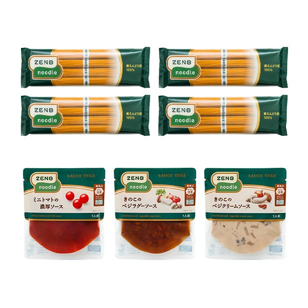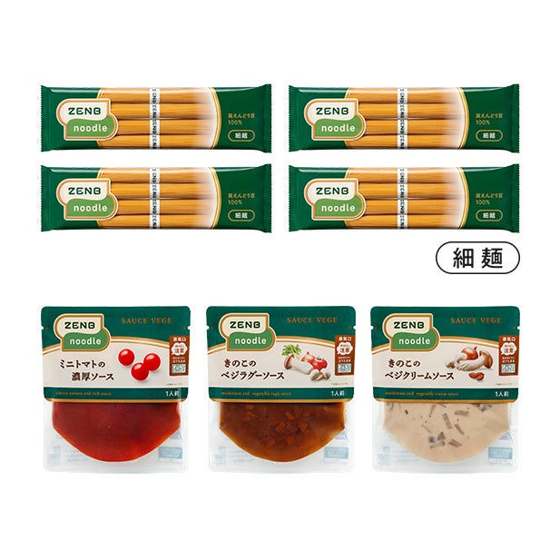 ZENBヌードル細麺16食(4袋)、野菜パスタソース3食(ミニトマトの濃厚ソース、きのこのベジラグーソース、きのこのベジクリームソース各1袋)