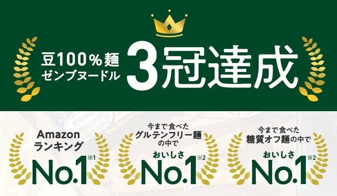 - AmazonランキングNo.1を獲得した豆100%「ZENBヌードル細麺」