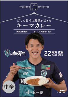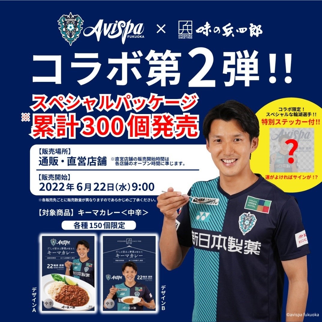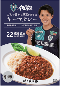 アビスパ福岡エンブレムと輪湖選手がデザインされた2種類のスペシャルパッケージをあしらった、「だしの旨みと野菜が活きたキーマカレー」(150g)を数量限定で6月22日(水)より発売いたします。